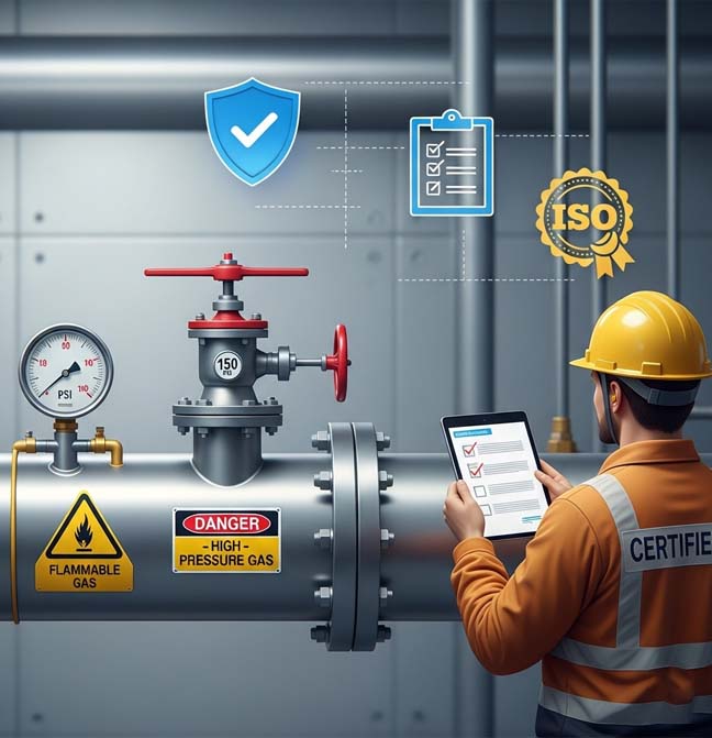 Yes. All our installations are fully compliant with UAE Civil Defence regulations and international standards such as NFPA 54 & 58, ISO 16923, and ASME B31.3.
